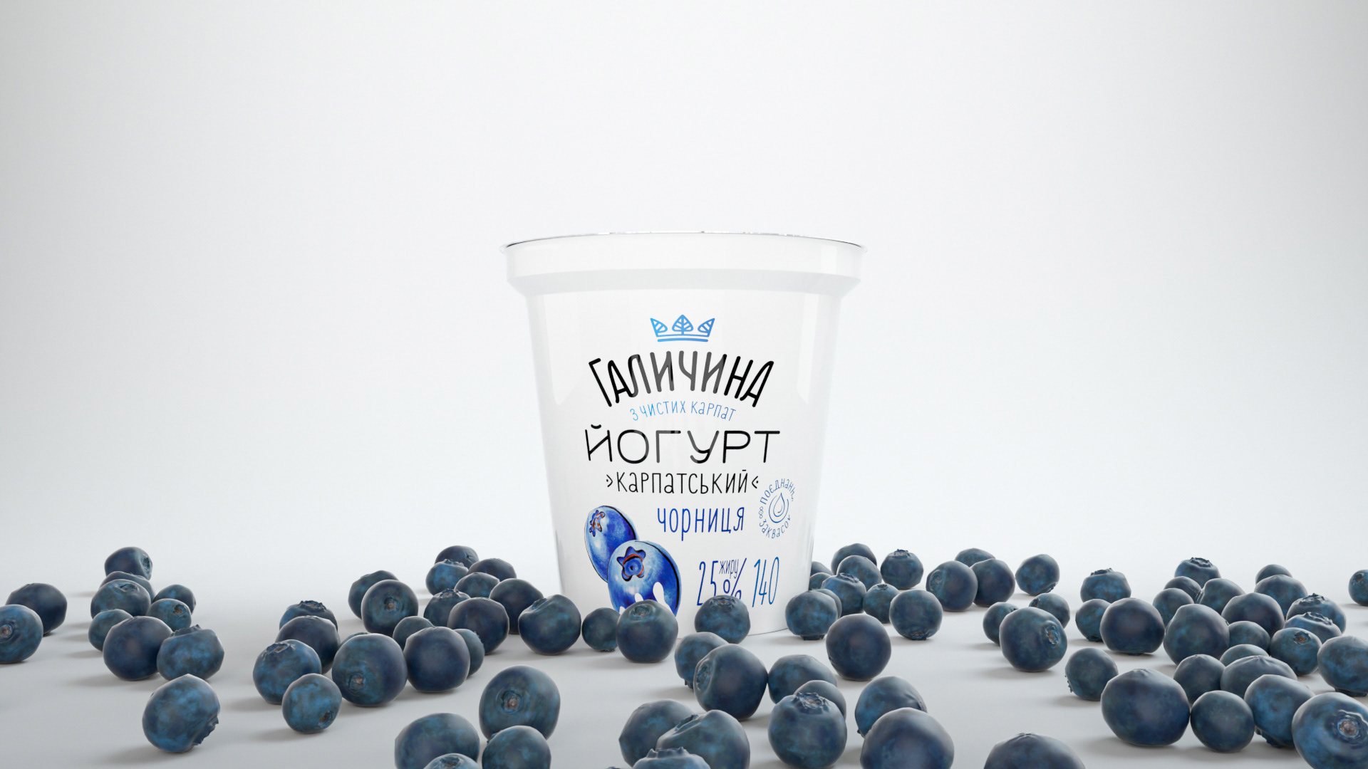 Nice 3D product render animation of "GALYCHYNA" BLUEBERRY YOGURT using Maxon Cinema 4D, Otoy Octane Render, NextLimit Realflow and HDR Studio.