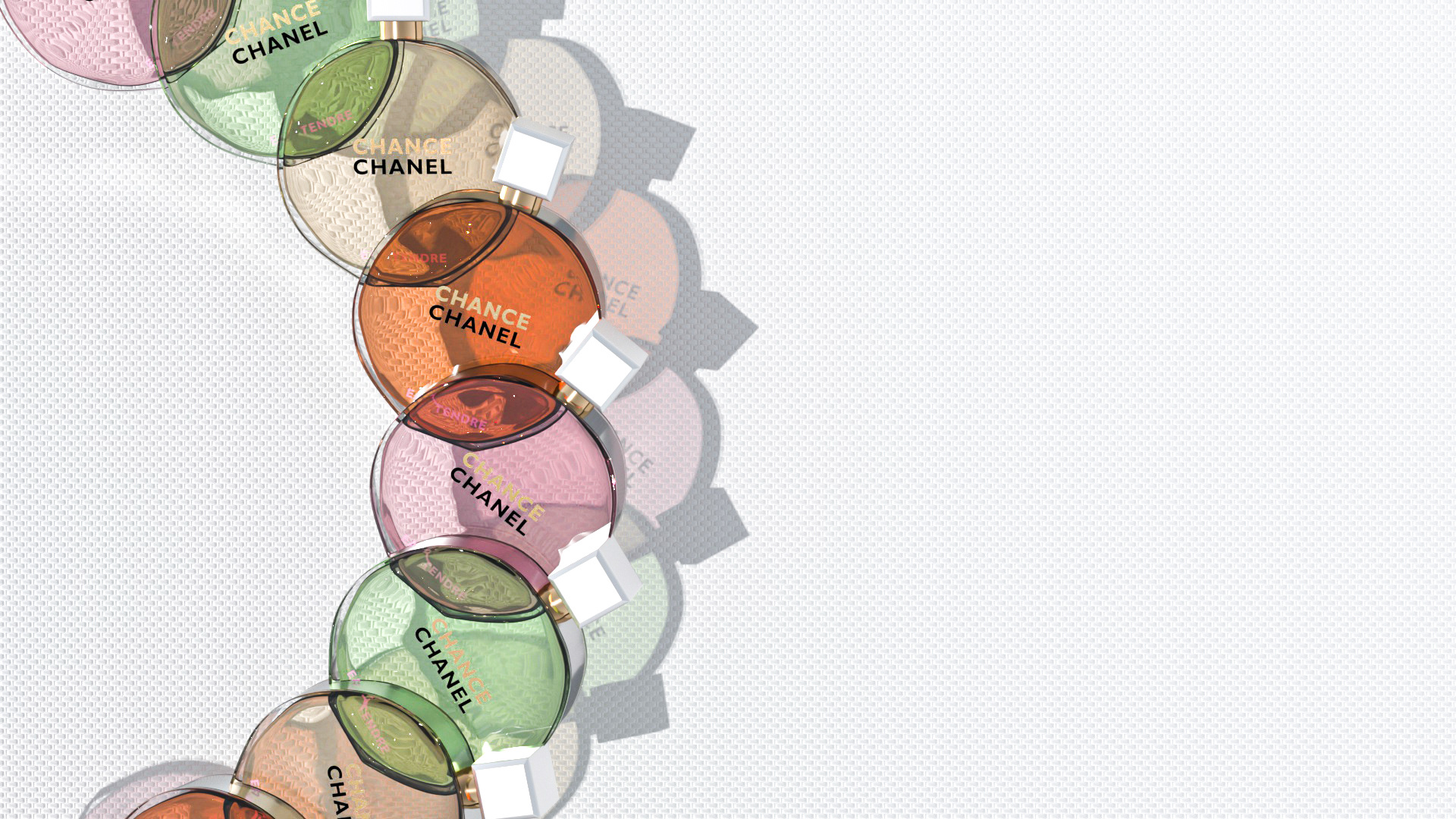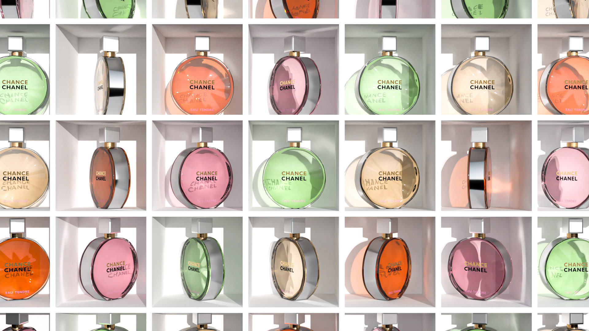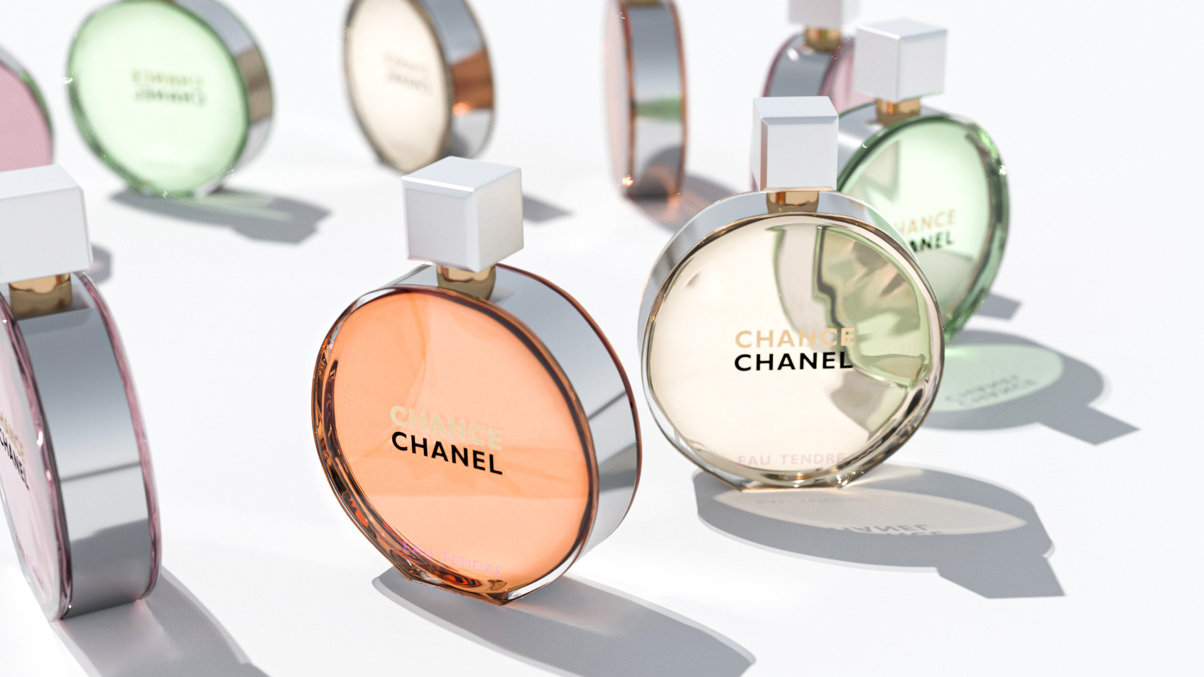 My design of Chanel Chance perfume in 3D with Maxon Cinema 4D and Otoy Octane Render program.