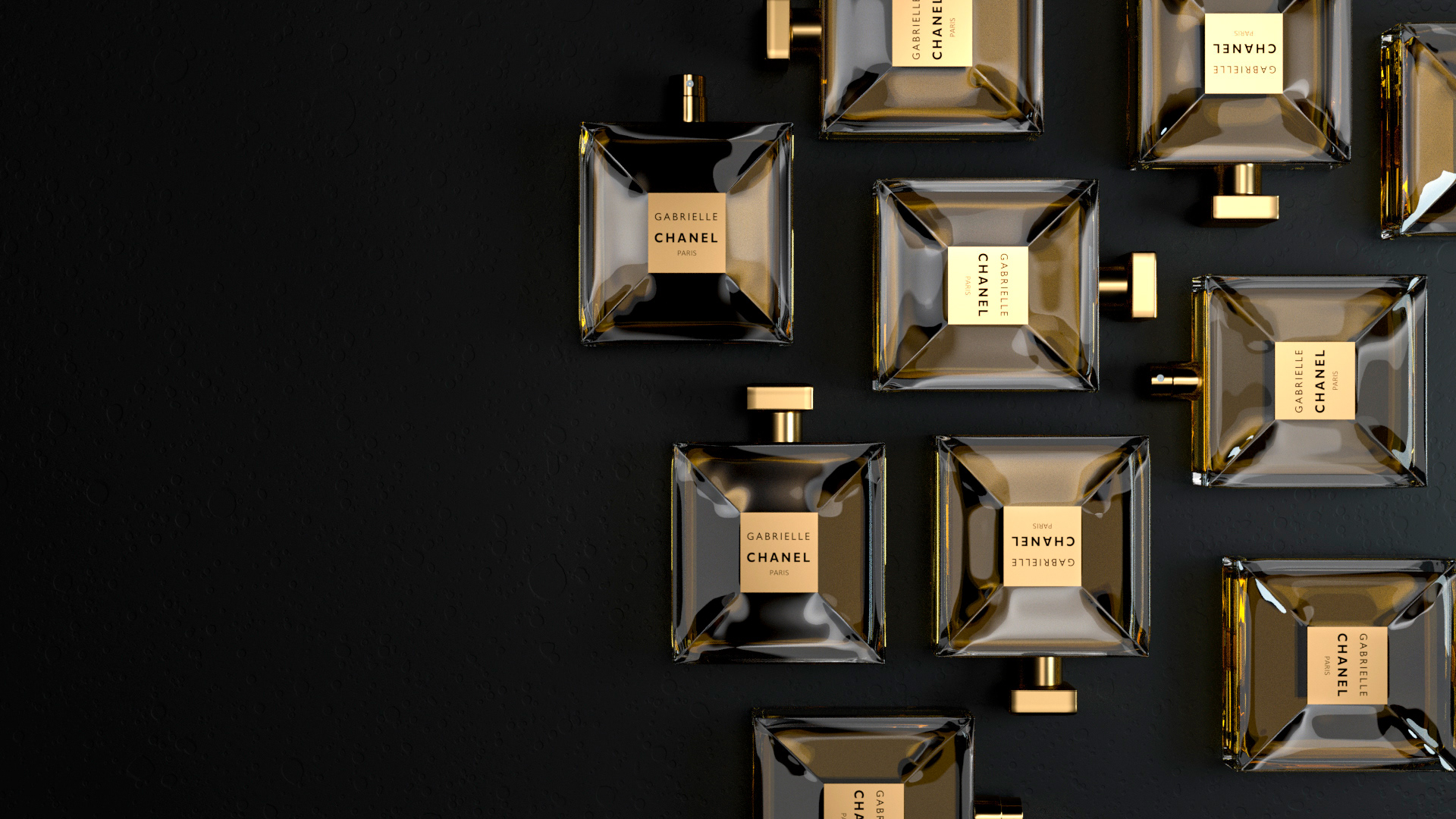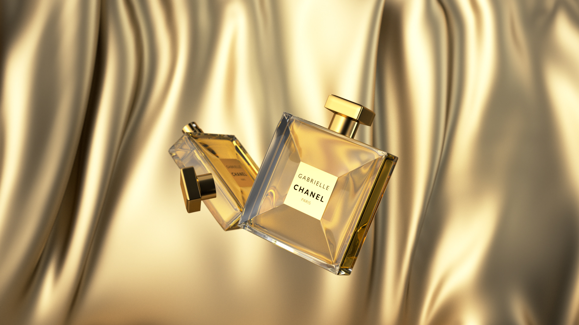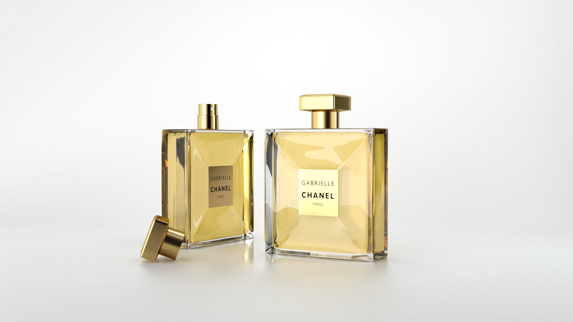 My design of Chanel Gabrielle perfume in 3D with Maxon Cinema 4D and Otoy Octane Render program.